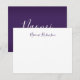 Carte de note personnalisée avec une belle typographie. L'avant de la carte est blanc et l'arrière de la carte de note est violet avec votre nom dans un texte de style signature Veuillez me contacter à claudia@claudiaowen.com si vous souhaitez customiser cette carte de note. Veuillez visiter ma boutique Zazzle http://www.zazzle.com/claudiaowenshop Design par claudiaowen.com