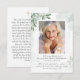 Cette carte de poème commémorative peut être remise en souvenir lors d'une célébration de la vie ou d'un service funéraire ou en hommage spécial à ceux qui n'ont pas pu y assister. Cette carte peut être personnalisée avec une photo préférée et votre choix de prière ou de poème. La photographie est à des fins d'illustration et peut être changée en une de vos propres.