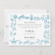 Cette charmante carte d'enceinte de faire-part de mariage présente des illustrations inspirées du centre-ville de Charleston, en Caroline du Sud, dont la lune de palmetto et de croissant, le vieux pont de la rivière Cooper, des ananas, des goélands, des pélicans, des crevettes, des tortues de mer, des crabes et des bateaux à crevettes. Une partie de la suite Charleton Toile Border en Blue mariage. Tout le texte est modifiable. Conception correspondante disponible.