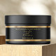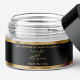 Un étiquette pour les cosmétiques et/ou les produits de savon avec un arrière - plan noir et une fausse bordure en feuille d'or. Customisez-le avec vos informations commerciales et produit.