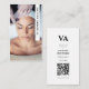 Cosmetologist & Esthetician Photo QR Code Carte de visite carte de visite chic moderne avec votre photo recouverte de votre profession et nom en typographie audacieuse et tendance. L'arrière comprend de l'espace pour l'URL de votre site Web pour créer un code QR numérisable et des informations de contact personnalisées.