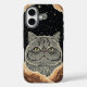 Peeking through an asteroid window, a grumpy yet lovable cosmic cat gazes into the vastness of space. This fun, retro-style illustration combines a love for felines with the adventure of space travel, perfect for any cat lover with their head in the stars.