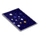 Tauchen Sie ein in ein kreatives Universum mit diesem faszinierenden Spiralnotebook, das ein atemberaubendes, blau, weiß und gelb kreisförmiges Design aufweist.