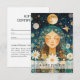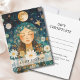 Beautiful woman, mystic woman illustration, moon, stars, daisy, green, gold business gift certificate.