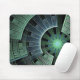 Mousepad mit "Cosmic Pod", abstrakte Kunst, Copyright © 2008, Susan Wallace. Ein rundes Labyrinthmuster in Grün- und Blautönen, das geometrische Formen in einem komplexen futuristischen Design kombiniert.