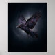 A mysterious cosmic raven emerges within a deep star-filled void, its dark feathers infused with subtle nebula hues and shimmering starlight edges. Fine particles dissolve from its wings, giving it an ethereal, almost supernatural presence. Surrounded by minimal cosmic elements and soft gradients, the scene feels elegant, dark, and enigmatic. This artwork captures mystery, intelligence, and symbolic depth, making it perfect for modern interiors, gothic aesthetics, and collectors of moody, atmospheric wall art.