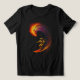 An astronaut in a classic gold spacesuit surfs a vibrant, fiery cosmic wave through the depths of space. The wave, a swirling nebula of oranges, reds, and purples, illuminates the dark, star-filled background. This striking image blends the thrill of surfing with the awe of space exploration, perfect for anyone who dreams of cosmic adventures and pushing boundaries.