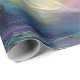 This whimsical wrapping paper features Aurora-like swirls of teal, violet, and gold over a reflective lake with silhouetted pines - a dreamlike cosmic landscape evoking wonder and renewal. Finished as an oil acrylic paint art print.
