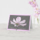 rosa Kosmos-Blume auf grauem Beileid, in verschiedenen Sprachen erhältlich;