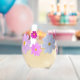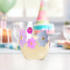 Stemless wine glass featuring cosmos flowers in pink, white, and orange.