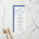 Feine blaue, weiße Blätter führen auf einem weißen, blauen Hintergrund durch dieses Menü. Dieses einzigartige Design ist perfekt für jede Feier. Kasse oder Schwesterladen www.pixieprints.com für alle Ihre Einladungen!