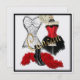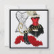 Une perle carré brille l'invitation avec l'image d'un corset de fil noir, une robe avec un costume de cancan rouge avec une agitation de plumes noires, un collier perlé noir, une paire de bottes de cancan noir, un boa de plumes rouges, et une partie d'une horloge murale sur blanc. Bordure noire. Voir enveloppe correspondante, ballotin, grand sac cadeau, étiquette et autocollant. Voir l'ensemble de la collection Cancan Invitation dans les INVITATIONS | Section Invitations et Cartes.