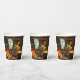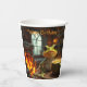 Diese Party-Papiertassen haben einen Frosch, der am Feuer Kaffee hat.