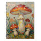 Pretty personalized notebook in a cottage core theme with flowers and mushrooms in mute earth tone vintage colors like red, yellow and sage green. Add a name in the personalize area.