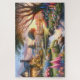 This enchanting artwork captures a dreamy cottage garden bathed in the golden glow of sunset, where colorful blooms and tall foxgloves line a gentle stream that winds past cozy houses and old wooden bridges. A large tree anchors the scene, its sprawling branches casting dappled shadows over the vibrant flowerbeds bursting with lupines, peonies, and wildflowers. Warm lights twinkle along the path, creating a soft, magical ambiance that feels both nostalgic and serene. The pastel tones, painterly brushstrokes, and whimsical composition give the piece a timeless, cottagecore charm—perfect for evoking the peace and poetry of slow-living landscapes. AI generated artwork.