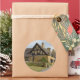 Autocollant photo rond avec les cottages à colombages de Shakespeare dans la ville de Broadway dans les Cotswolds, Angleterre, Royaume-Uni.