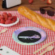 This simple paper plate has a Cotten Candy themed pattern and a praying mantis. Perfect for people that like clouds and the colors yellow, pink, purple, and orange. This minimalist pattern had a purple background color and a soft cloud texture look.