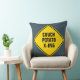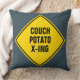 Dieses Kissen warnt jeden vor der Gefahr eines Zusammenstoßes mit einer Couchkartoffel auf dem Weg zum Sofa.