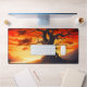 Ce tapis de bureau a une photo de coucher de soleil dessus.