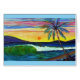 Suzanne M Art vierge à l'intérieur de la carte pliée. Photo sur le front de mer de la ville de Lahaina. La vue donne sur un palmier et un coucher de soleil d'été entre les îles de Lana'i à gauche et Moloka'i à droite