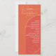 Un programme de mariage moderne dans orange vif et rouge pamplemousse tendance. Cette nuance d'orange s'appelle Verona Sunset. Détails en faux or, une silhuette d'une fleur délicate. Typographie moderne et détails de conception de formes voûtées.