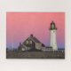 Des couleurs chaudes et pastel recouvrent le ciel derrière l'emblématique Old Scituate Lighthouse sur la rive sud du Massachusetts. USA.