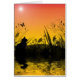 Imaginaire de coucher du soleil avec des plantes et un chat relecting dans l'eau