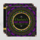 Beau tableau noir inspiré Bat mitzvah invitation design coloré des couleurs néon uv coloré look. Plaque ronde dorée pour indiquer le nom, le nom et la date de l'événement sur le devant de la carte. Une lueur dans le design de la partie sombre mélangé à un superbe éclat de lumière éclatante avec un motif d'étoile géométrique en noir rose fuchsia et des points de couleur fluro brillants. La conception se poursuit à l'arrière avec de l'espace pour plus de texte avec des trimes correspondants. | Bien sûr, ce design conviendra aussi à tout type d'occasion et d'événements spéciaux, y compris la douche de nuptiale super, dîner de lumière noire, anniversaire psychédélique et bien plus | Fait avec amour par Webgrrl.biz