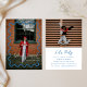 Cette faire-part de graduation moderne et bleue et l'invitation à la remise des diplômes comporte deux de vos photos de diplômés avec une bordure ondulée et branchée qui peut être changée en couleurs de votre école ou de n'importe quelle couleur que vous aimez. L'avant de ce design est orné d'une grande photo et l'arrière contient toutes les informations de la fête. Toutes les couleurs peuvent être modifiées et tous les textes et photos peuvent être modifiés. Vous avez besoin d'un bleu marine plutôt que d'un bleu vif ? Pas de problème ! Customisez facilement ce design ou trouvez d'autres options dans mon magasin Zazzle.