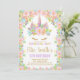 Couleurs florales licorne blanche Invitations d'anniversaire