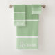 Un classique. Blocage de couleurs dans différentes nuances de tons verts muets avec des séparateurs blancs et monogramme à la base de la serviette. Disponible dans une variété de tons.