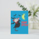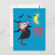 Niedliche Halloween Postkarte mit einer Aquarellkunst einer Dracula-Katze mit roter Bogen-Krawatte und schwarzem Kap mit Fledermäusen im Hintergrund. Es gibt auch einen leuchtenden Halbmond. Der spöttische Schriftart sagt "Graf Catula".