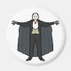 Graf Dracula Vampire Design zeigt den Grafen stehend mit Armen überdehnt mit Kap hinter in einer typischen beängstigenden Pose. Ein Hauch scharfer Zähne, die Haare und die spezielle Fibel geben der bösen Absicht des Grafen einen Schimmer.