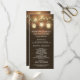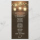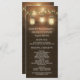 Country Barn Rustic Mason Jar Wedding Programs - mit einem Stallholzhintergrund mit beleuchteten Maurerkirschen und Saitenleuchten, die an einem Baumzweig hängen.