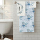 Machen Sie Ihr Bad zu einer Oase der Ruhe mit den sanften Blautönen und den zarten Blume der Aquarellfarben, die jedes Handtuch schmücken. Das Handtuch zeichnet sich auch durch ein einzigartiges Kränzdesign aus, das die perfekte Leinwand für Ihr eigenes Monogramm bietet und Ihren Badehandtüchern eine Touch der Individualität verleiht.