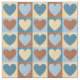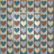 Es handelt sich um ein niedliches Stoffdesign für Vorhänge, Haushaltsgebrauch oder Kleidung. Auf den kontrastierenden Farbquadraten zeichnet es sich durch ein Muster aus blassgelben, hellblauen, Zimtbraun und dunkelblauen Herzen aus. Ideal für einen Country-Chic oder Homespun, gemütlich aussehen.