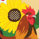 In den Einsendungen zum Country-Wettbewerb wird diese festliche Karte geschmückt. Rot-blaues Steppflocken, Sonnenblume in einer blauen Vase, Hahn, Pfirsiche in Dosen, die in einem Glas mit grünem Tuch mit Garn und Garnelen gehalten sind, und rote Tomate. Im Hintergrund ist eine Holzoberfläche und eine bräune Wand. Ideal für einen Sommergruss. Innen: Leere für jeden Anlass.