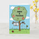 A sweet greetings card to celebrate a wedding, which can be personalized. The card features a colorful garden scene with an apple tree, a bumblebee buzzing around and a ladybird scuttling on the ground.