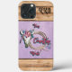 Personalisieren Sie diese einzigartige "One of a Kind" Cowgirl iPhone Case. Es verfügt über einen Kuhschädel, eingebettet in Pink und Purple Blumen & Feathers, mit einem Seil auf einem Lila Hintergrund und hellbraunen Holzgrenzen und dem Zitat..."I'm Country Y'all"! Original Art Design von Künstler Kerry Miller.