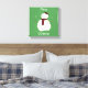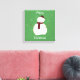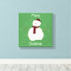 Ein niedlicher Schneemann sitzt im Zentrum dieses wundervollen Leinendrucks. Grün mit weißen Punkten ist der Hintergrund hinter diesem niedlichen kleinen Schneemann. Es sagt frohe Weihnachten um den Schneemann herum.