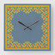 Eine hübsche quadratische Wall-Uhr, mit einem Rand von Pot-Marigold-Blume auf Indigo-Hintergrund. Teil der Posh & Painterly 'Marigold Medley' Kollektion.