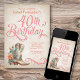 Holen Sie sich Ihre Schuhe für eine tolle Mädchennacht mit dieser Country Western Geburtstagseinladung! Das Cowgirl Stiefel und die Blumen sind wunderschön und Vintag kalligraphisch. Ideal für Ihr Lieblings-Cowgirl oder Country-Musikfan an ihrem 40. Geburtstag. Bestellen Sie Ihre gedruckten Einladungen und Party oder laden Sie Ihre digitalen Einladungen jetzt für einen Tag, den sie nie vergessen werden!