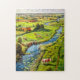 Acrylic fantasy painting of a peaceful countryside with grazing cows, a winding stream, green fields, and red-roofed barns under a clear sky. The bright colors and stylized composition evoke rural charm, pastoral serenity, and a timeless farming landscape. Ideal for home decor, nature-themed products, calendars, greeting cards, and editorial use.