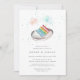 Une douche à nuptiale ou des invitations wedding showers sont offertes avec une tranche de gâteau en arc-en-ciel agrémentée de confettis d'aqua et de mousseux à l'aquarelle. Personnalisez avec vos détails de douche en lettres grises.