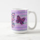 Mon oeuvre originale sur cette tasse présente un motif vintage de fleurs transformées et numériquement par moi dans une silhouette colorée et illustrée de papillon floral. L'arrière - plan est un motif vintage de rayures ondulées conçues dans des couleurs complémentaires pour donner à cette tasse unique un style artistique. Ce sont des tasses de 15 onces, juste la taille idéale pour votre café ou thé maison - ou même du chocolat chaud! Il ferait un grand cadeau et vous pouvez mettre des paquets de café, des sachets de thé ou du chocolat chaud à l'intérieur. Une autre idée de cadeau est de mettre un petit plante dedans pour le rendre spécial pour votre être cher.