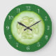 Fraîche tranche de concombre de cornichon dans un design graphique horloge murale avec un closeup d'une vue ouverte découpée. Cette délicieuse horloge murale de cuisine apportera une petite bouffée de vert et une tranche de nourriture à n'importe quelle cuisine de chambre à décorer dans votre maison. Utilisez comme accent de la maison ou pièce de décoration de la maison pour ajouter un peu de couleur primaire à votre cuisine, salon ou salle pour enfants.