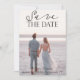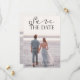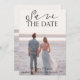 Ideal, um die Fotos der Verlobung zu zeigen, mit einer Kombination aus Serif- und Script-Schriftart, diese "Save the Date"-Einladung enthält ein Foto, das das Paar unter schwarzem Text. Auf der Rückseite der Karte befindet sich das gleiche Foto des Paares (ohne Text).