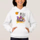 Un mignon couple en sorcière violette casquettes se tient à côté d'un arbre éffrayant. Il y a un petit fantôme avec un casquette de sorcières violettes qui se cache derrière l'arbre, un hibou est perché dans l'arbre et une chauve-souris vole devant la lune d'Halloween orange. Disponible sur beaucoup de tailles différentes, du nourrisson à l'adulte, et différents styles de chemises et de sweatshirts aussi.