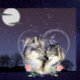Deux loups amoureux, lune et étoiles au-dessus jettent l'oreiller. Pour tout décor de chambre.