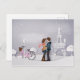 Couple in Snowy Paris mit Eiffelturm Postkarte